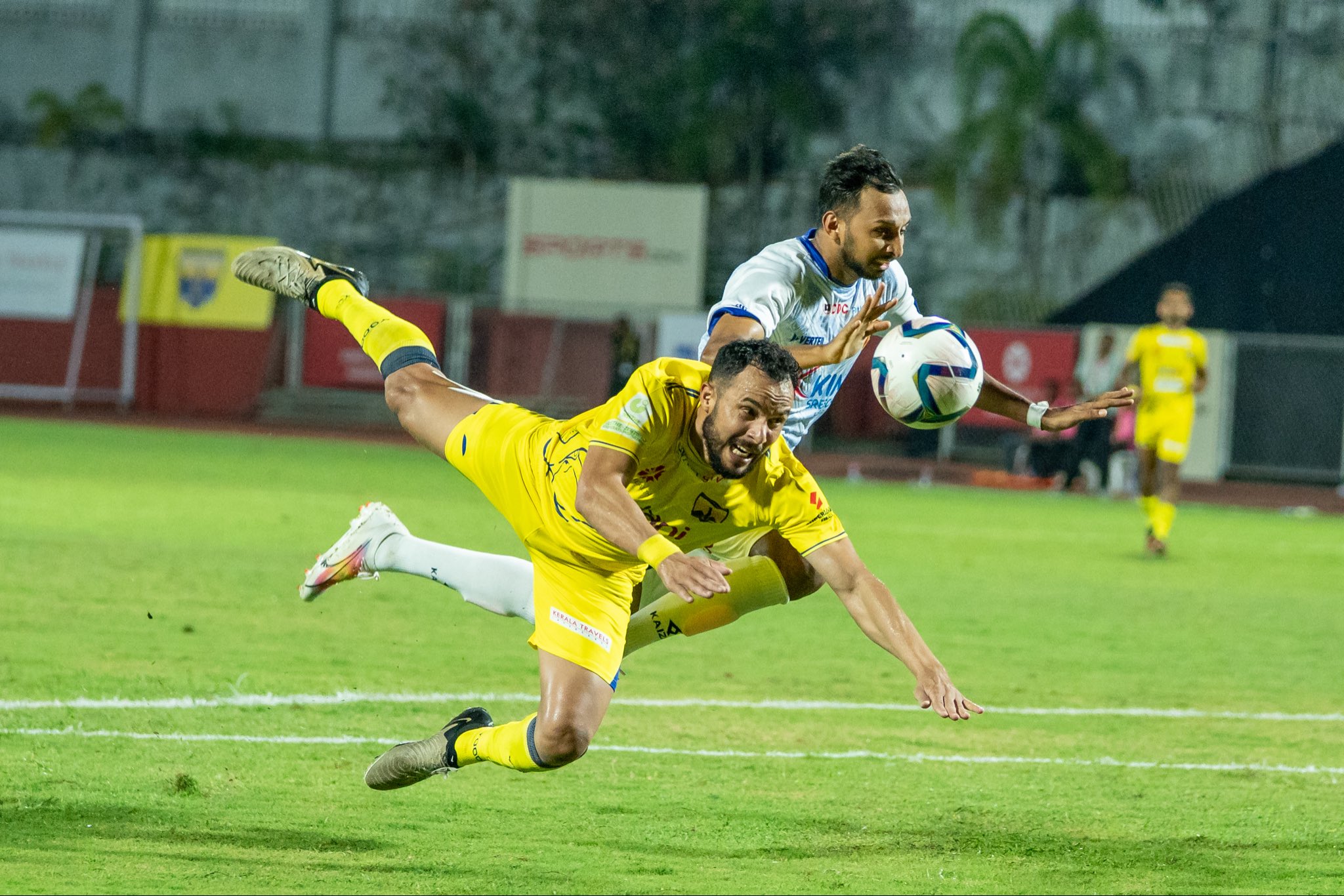 The match began with early sparks as Kombans’ Brazilian winger Ronald tested the experienced Ubaid CK, who responded with sharp reflex saves. At the other end, Abdou Karim, who has played for Shillong Lajong, Churchill Brothers, and Real Kashmir in the I-League, looked threatening, forcing Aaryan Saroha, who is on loan from East Bengal, into an early save.