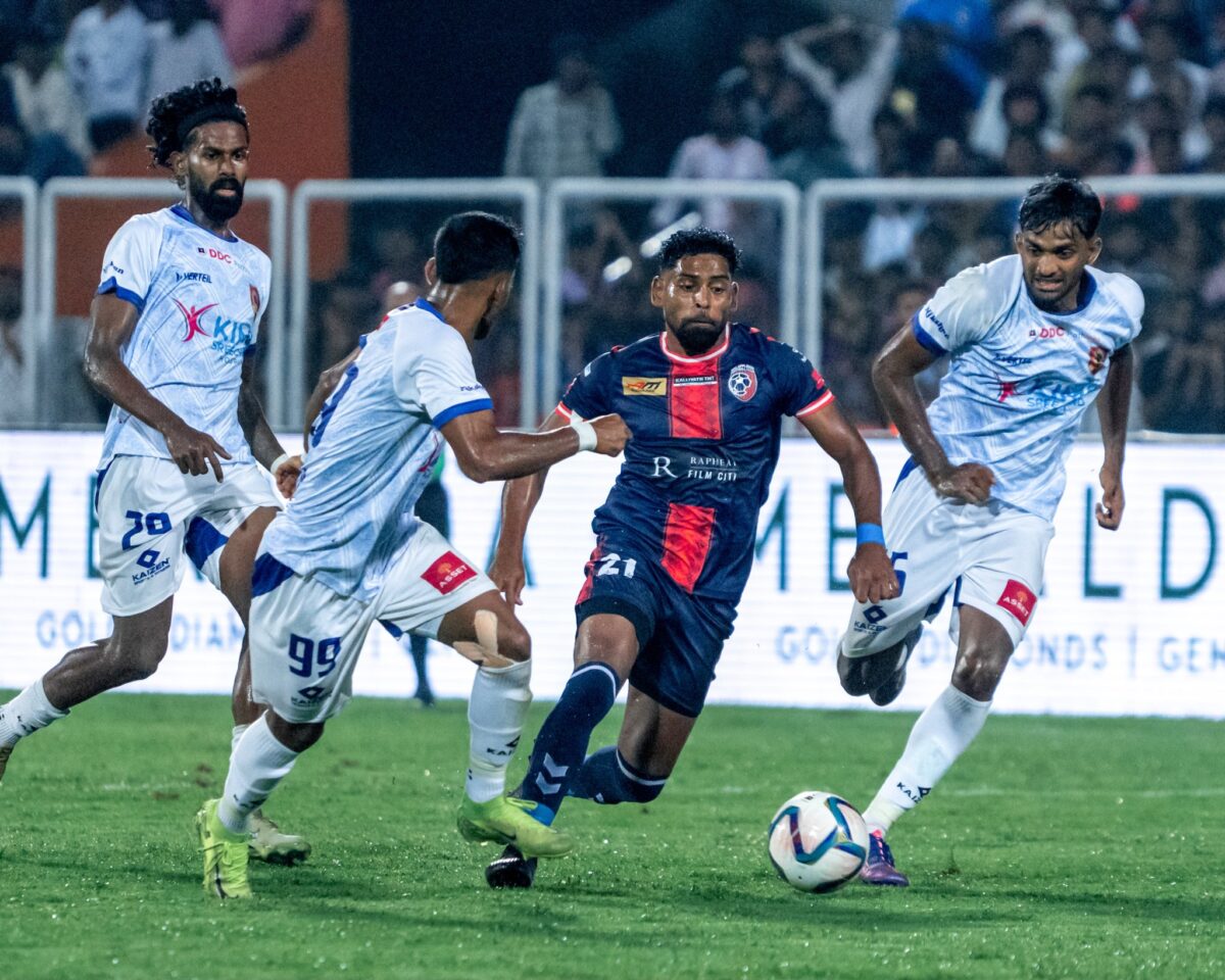 Both teams lined up in 4-3-3 formations, but the first half never really caught fire. Faslu Rahman, who got injured in the last match, was replaced by Akbar in the starting XI. The ball moved, but the ideas didn’t. Malappuram enjoyed more possession, yet struggled to create anything meaningful. Roy Krishna, the Fijian striker, barely touched the ball early on, isolated and disconnected from the midfield led by Aitor Aldalur and Facu Ballardo. The few half-chances that came their way fizzled out tamely. Badr, the Moroccan midfielder, went for a long-range strike after a loose clearance from a set piece. It had power but lacked direction, sailing just over the crossbar.