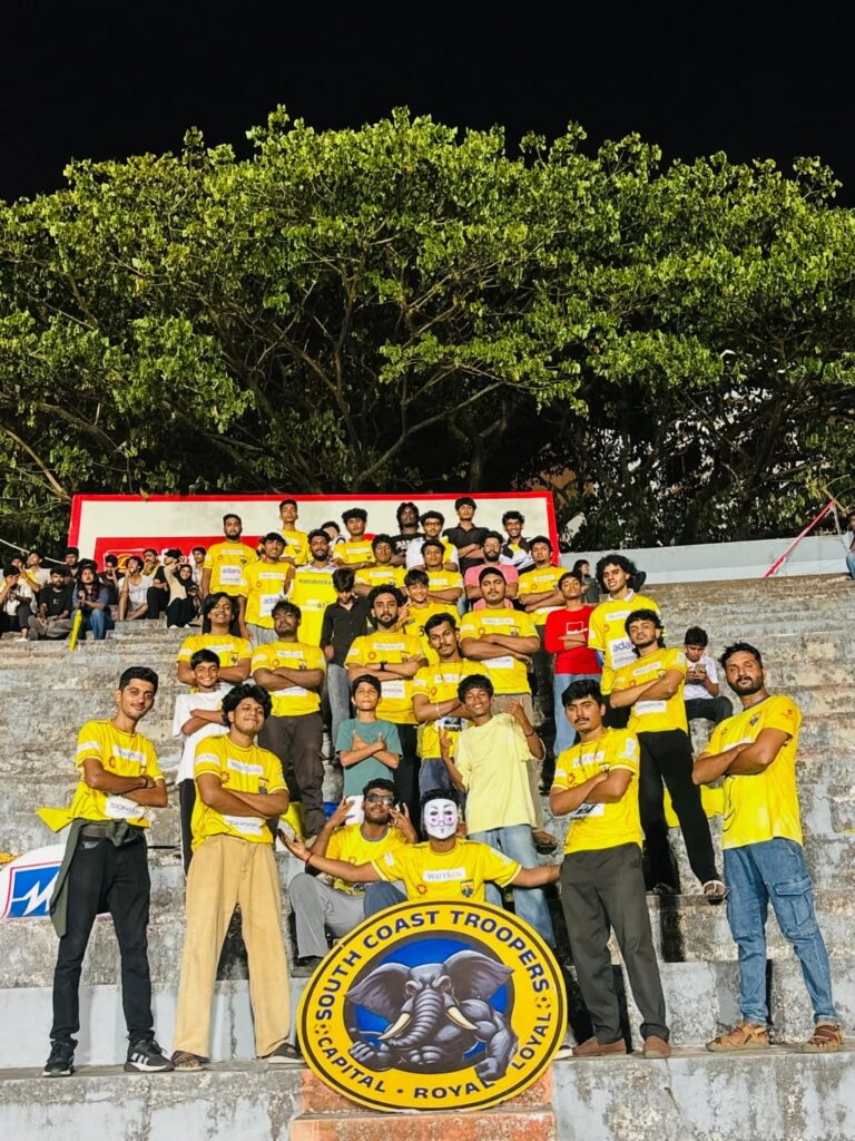 The first season of SLK was originally planned across three venues, and Thiruvananthapuram wasn’t even guaranteed home matches. But the TKFC management pushed hard, took a bold step, and renovated the Chandrasekharan Nair Stadium to make it match-ready. The decision changed everything. The league suddenly had a brand-new fan culture blooming in a city that many had written off as “not football crazy enough.” That move didn’t just give TKFC a home; it sparked a fresh fan movement, and South Coast Troopers were one of the loudest outcomes of that shift.